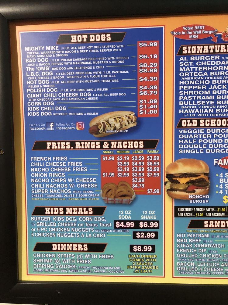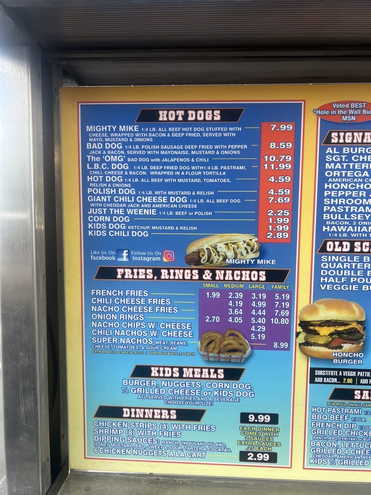 1/4LB deep fried dog with 1/4LB pastrami, chili, cheese & bacon. Wrapped in a flour tortilla.